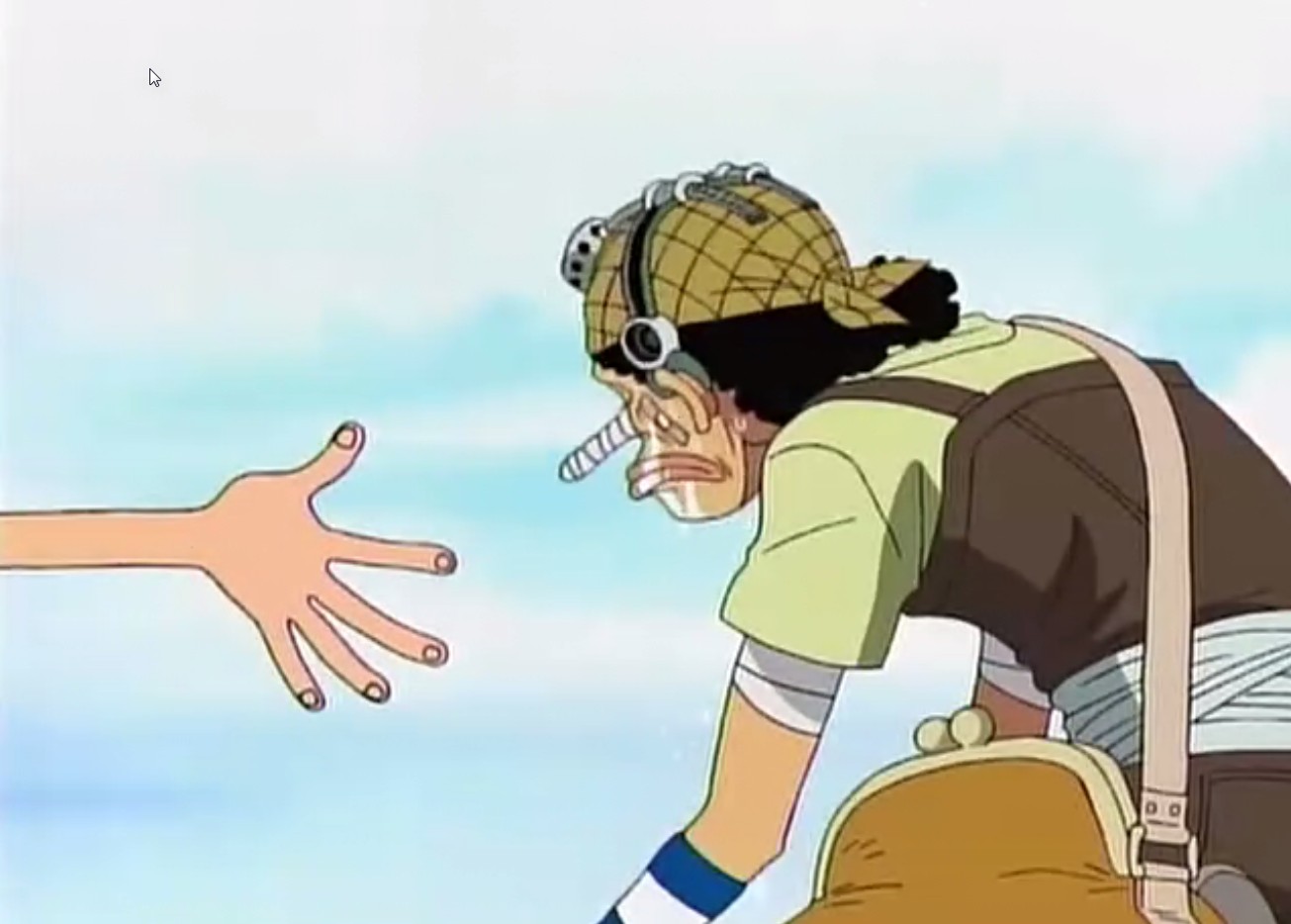 聽見烏索普的道歉,路飛伸長他的手來接他。